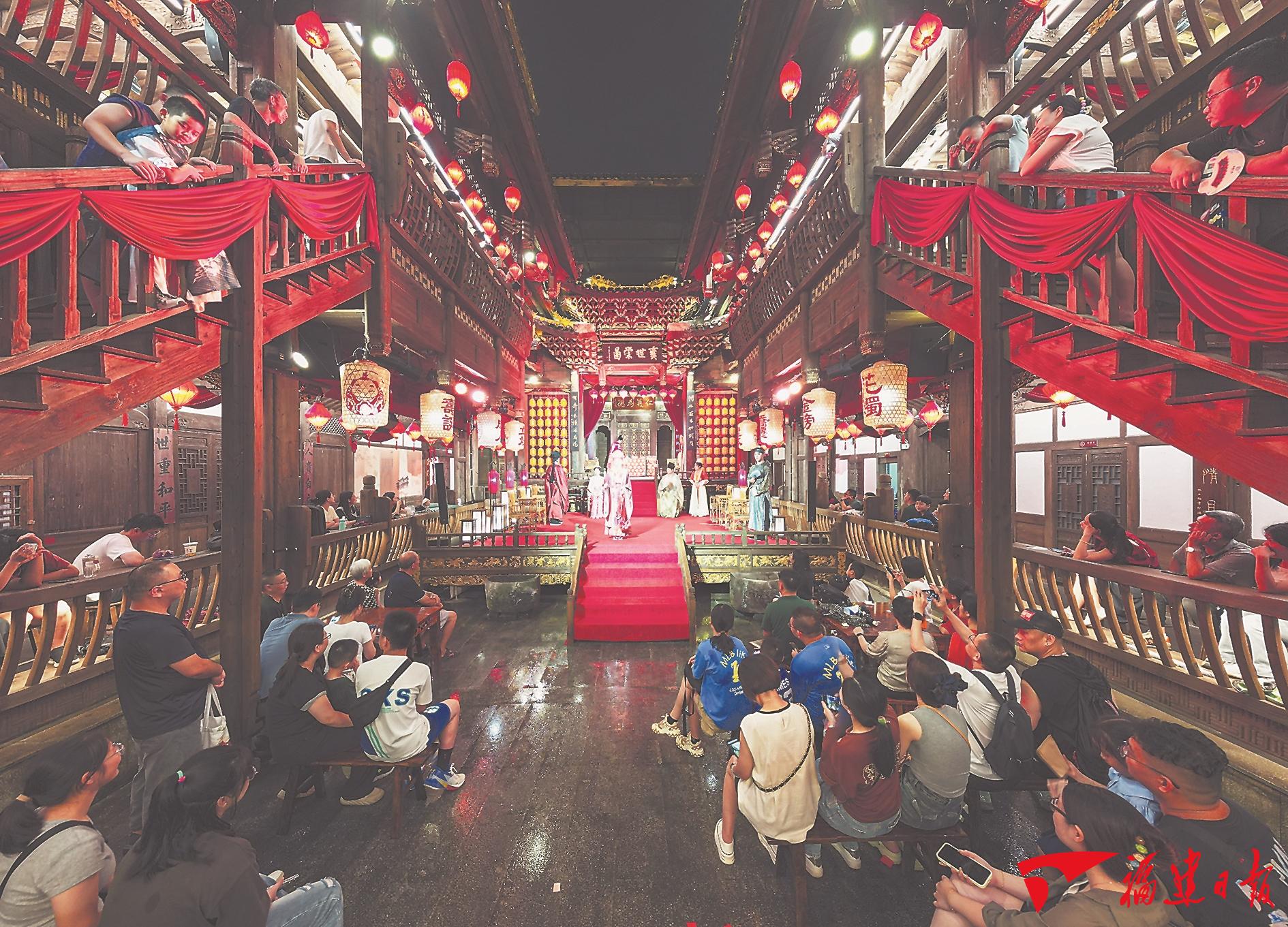长汀八喜馆内文艺演出吸引市民前来观看。 通讯员 朱芳彬 摄