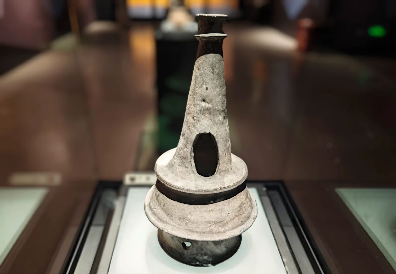 昙石山遗址是我国东南地区典型的新石器文化遗存之一,也是福建古文化的摇篮和先秦闽族的发源地。这里出土了包括石器、骨器、角器、牙器、贝器、陶器、玉器和原始瓷器在内的种类丰富、数量可观的文化遗物,具有很高的考古研究价值。灰陶塔式壶就出土于这里。它通高28.6厘米,造型特殊,上部为尖塔形状,下部呈壶形,内部为空,风格和昙石山遗址其他器物迥然不同,显得格外神秘。由于该器型在目前国内考古中尚属首次发现,缺少旁证且相关研究资料不足,因此其具体用途众说纷纭,难以定论。